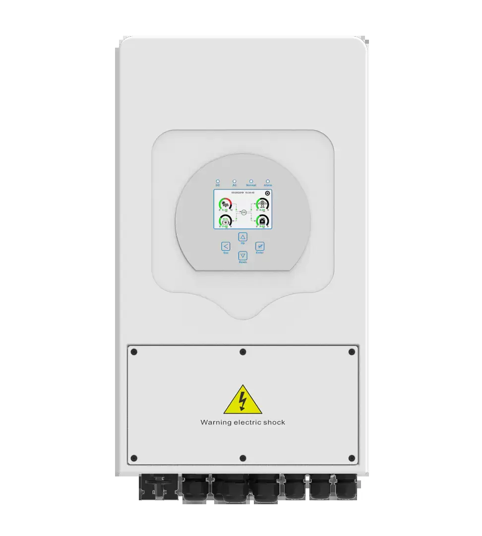 Монофазен мрежови инвертор с хибридна функция. Двупосочен-работи в паралел на ел мрежата без да ограничава входящата мощност. Има хибриден (ЕPS) изход за консуматори при прекъсване на мрежовото захранване. Не изнася енергия към мрежата, работи със смарт устройство.